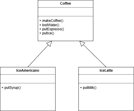 무언가 Coffee 클래스에 공통된 것을 두고, 상속을 통해 자식 클래스에서 마무리하면 될 것 같다.