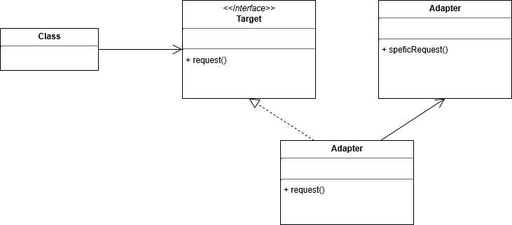 하지만 어떤 모듈도 그럴 수 없을 때 어댑터는 클라이언트가 요청하는 타겟 인터페이스(Client Interface)를 만족하게 하고 호환되지 않는 다른 인터페이스를 불러 서로 영향을 받지 않고 사용 할 수 있도록 하는 패던이다.