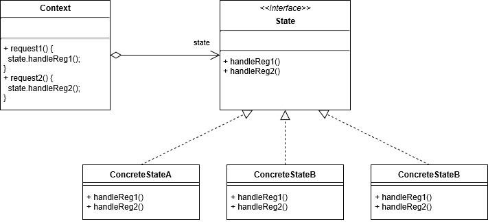 상태를 객체화 하여 행동을 위임하고 있는 것을 볼 수 있다.