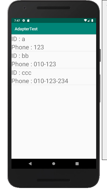 adapter.addItem(new MyItem("ccc","010-123-234"));