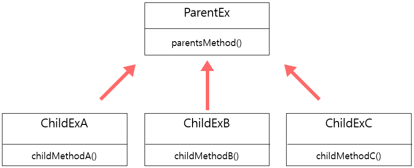 Exception 1,2,3의 공통조상이 되는 parentsMethod()를 호출