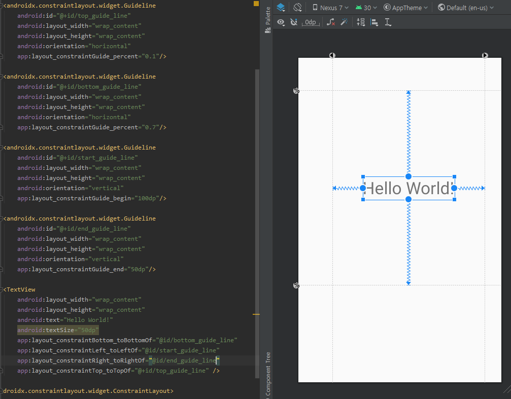 end_guide_line은 좌측에서 50dp 떨어진곳에 위치한다.