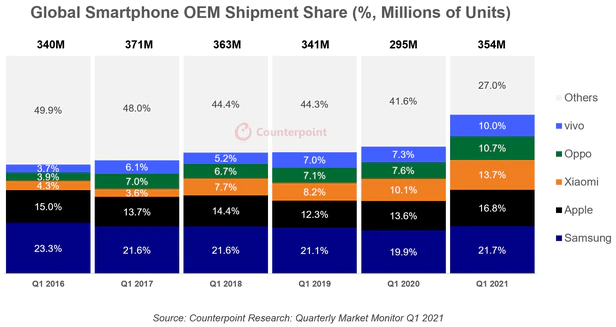 삼성, 스마트폰 점유율 1위 탈환했지만...매출액은 애플 절반도 안돼