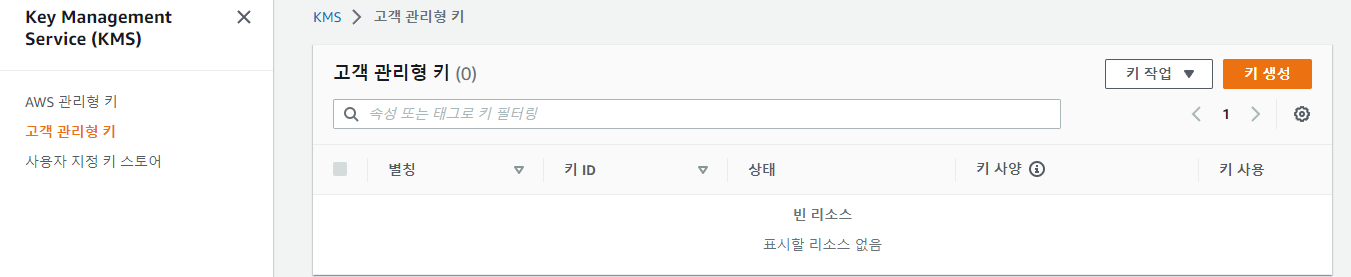 고객 관리형 키를 누르고 키 생성을 누른다.