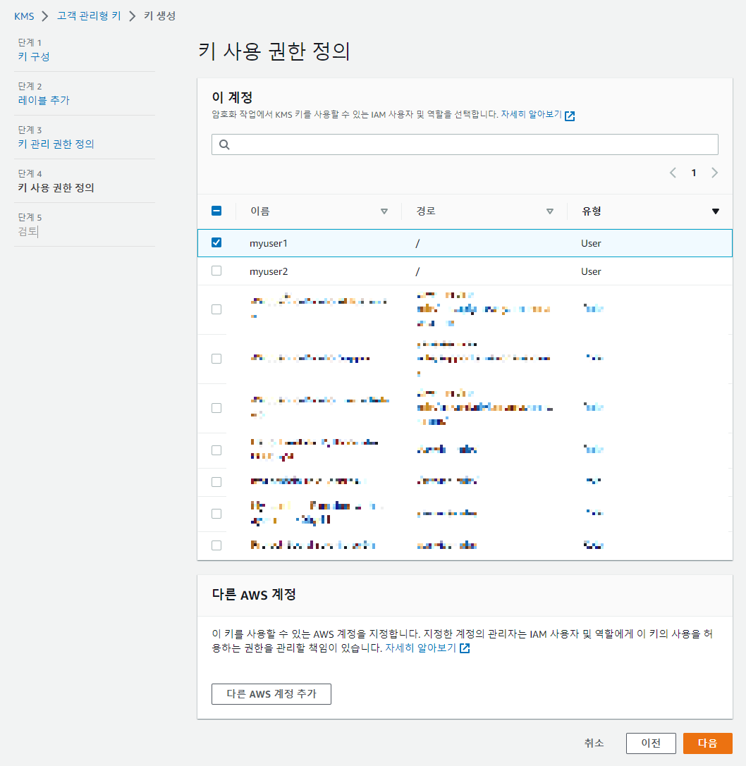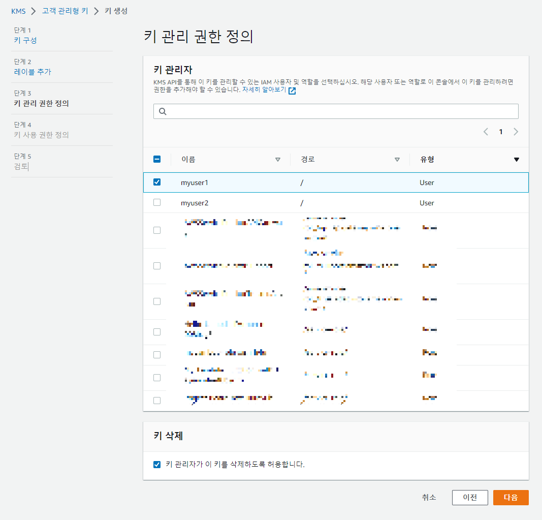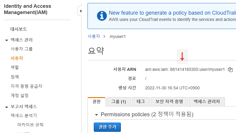 myuser1과 myuser2의 사용자 ARN을 저장해둔다.