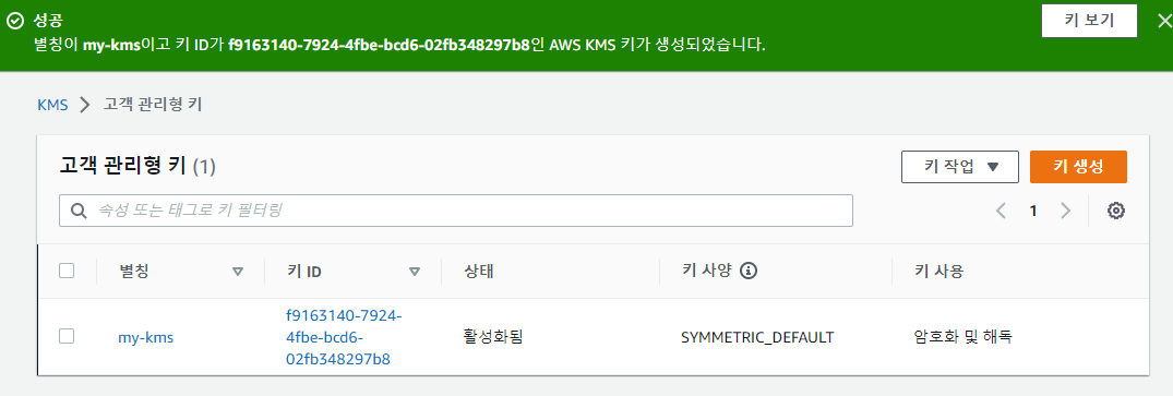 AWS KMS 키 : AWS KMS 키 중에서 선택 클릭 후 본인이 만든 KMS 선택