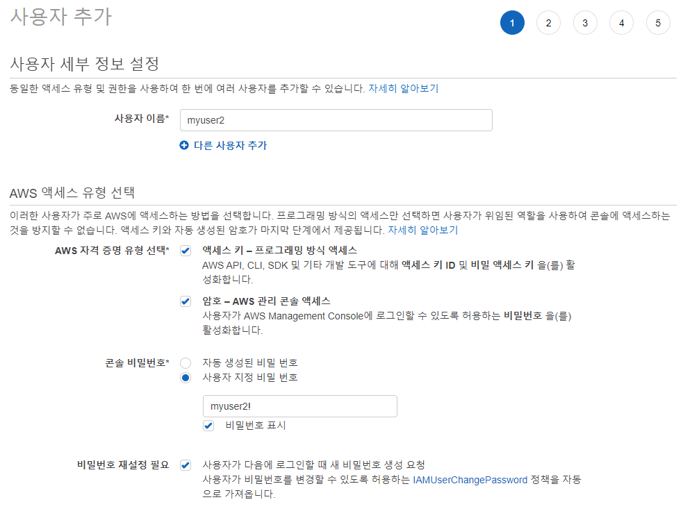 두번째 사용자를 다음과 같이 생성해주고 다음 버튼을 누른다.