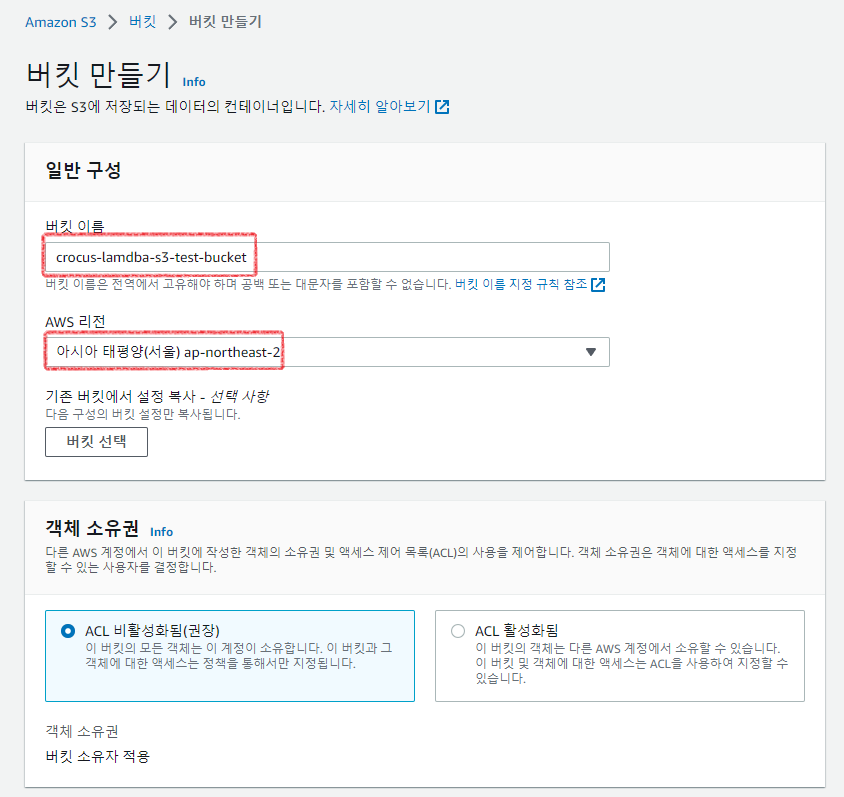 ์๋์ ๊ฐ์ด S3 ๋ฒํท์ ๋ง๋ค์ด๋ณด์.