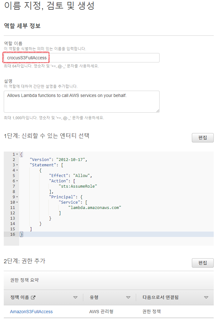 Lambda๋ฅผ ์ํ IAM Role์ ๋ง๋ค์ด S3 ์์ธ์ค ๊ถํ์ ๋ถ์ฌํ์
