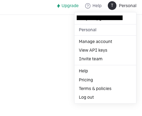 계정 생성 및 로그인 후, 우측 상단에 “Personal” -> “View API keys”:를 클릭