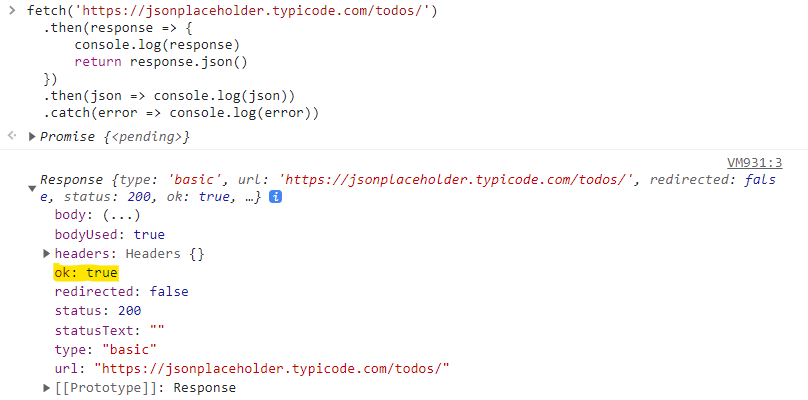response.ok를 사용하면 알 수 있다. 요청이 정상적으로 성공하면 response.ok가 true로 나오지만, 실패한 경우 false로 나타난다.